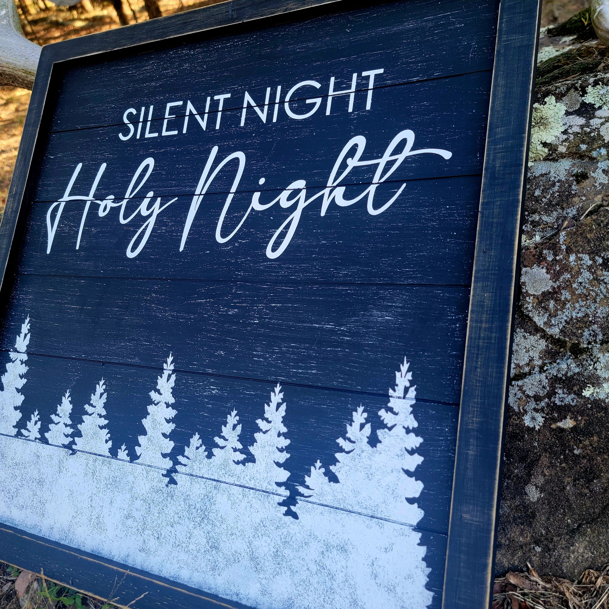 Silent Night w/Vintage Black & White Look and a Forest of Trees